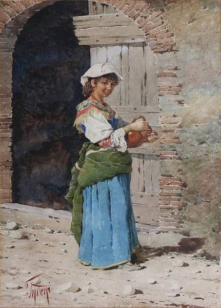 Young girl with a pitcher by a doorway