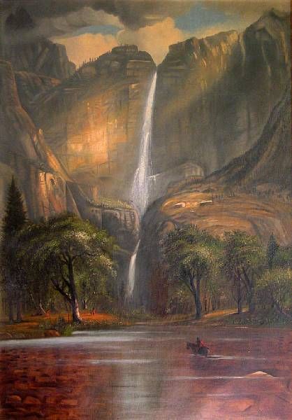 Yosemite falls with Indian encampment