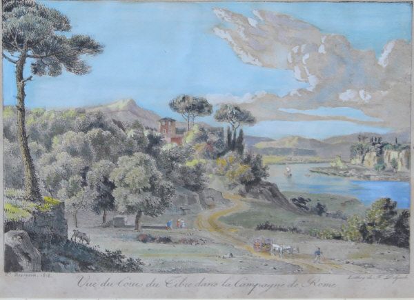 | Vue du cours du Tibre dans la campagne de Rome, "Vue prise sur le bordre de L'Arno à Florence" | |
