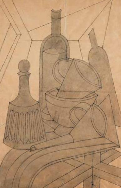 ReCto: nAtURA MoRtA Con bottIGlIA e bICChIeRI VeRso: UoMo-AUtoMA e CAVAllo
