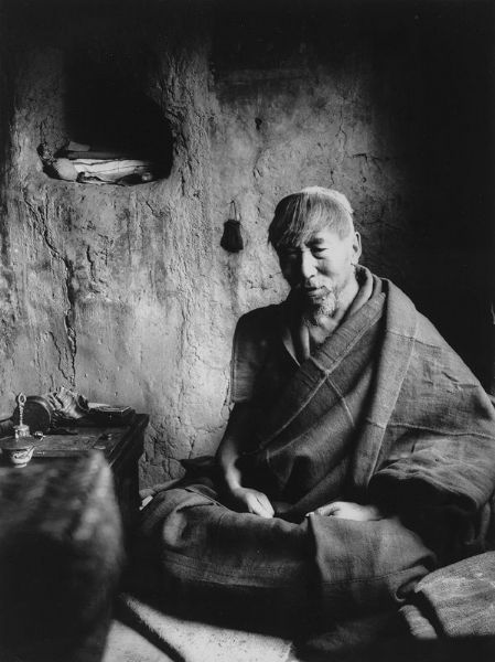 | L'eremita Tsampa-Tendar nella sua cella sul monte Ship-ta nei pressi di Gyantse | |