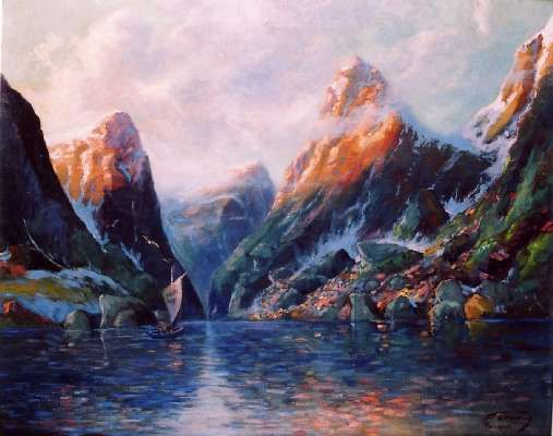 Romantische Fjordlandschaft mit Segelboot