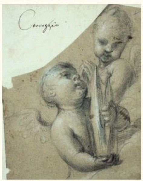 Deux putti, l'un tenant une mitre