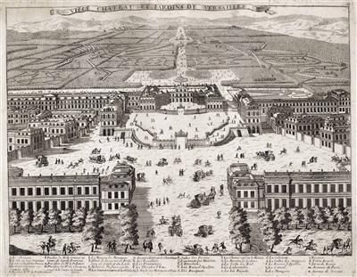 Ansicht von Schloß Versailles, betitelt: "Ville chateau et Jardins de Versailles"