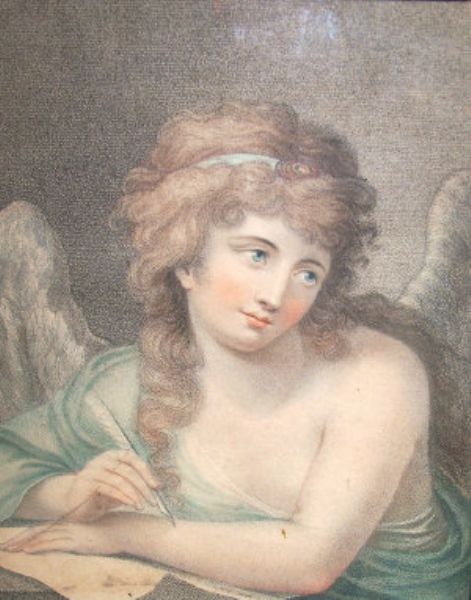 Angel seated with a pen and a letter