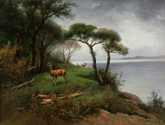 River Landscape With Stag