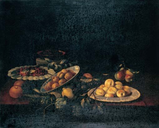 STILLLEBEN MIT PFIRSICHEN UND TRAUBEN