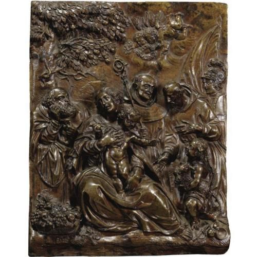A BRONZE RELIEF OF THE HOLY FAMILY