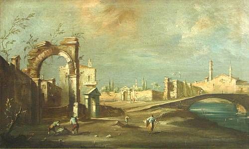 A capriccio with figures