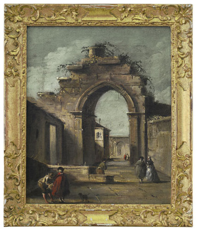 Capriccio con arco in rovina e figure