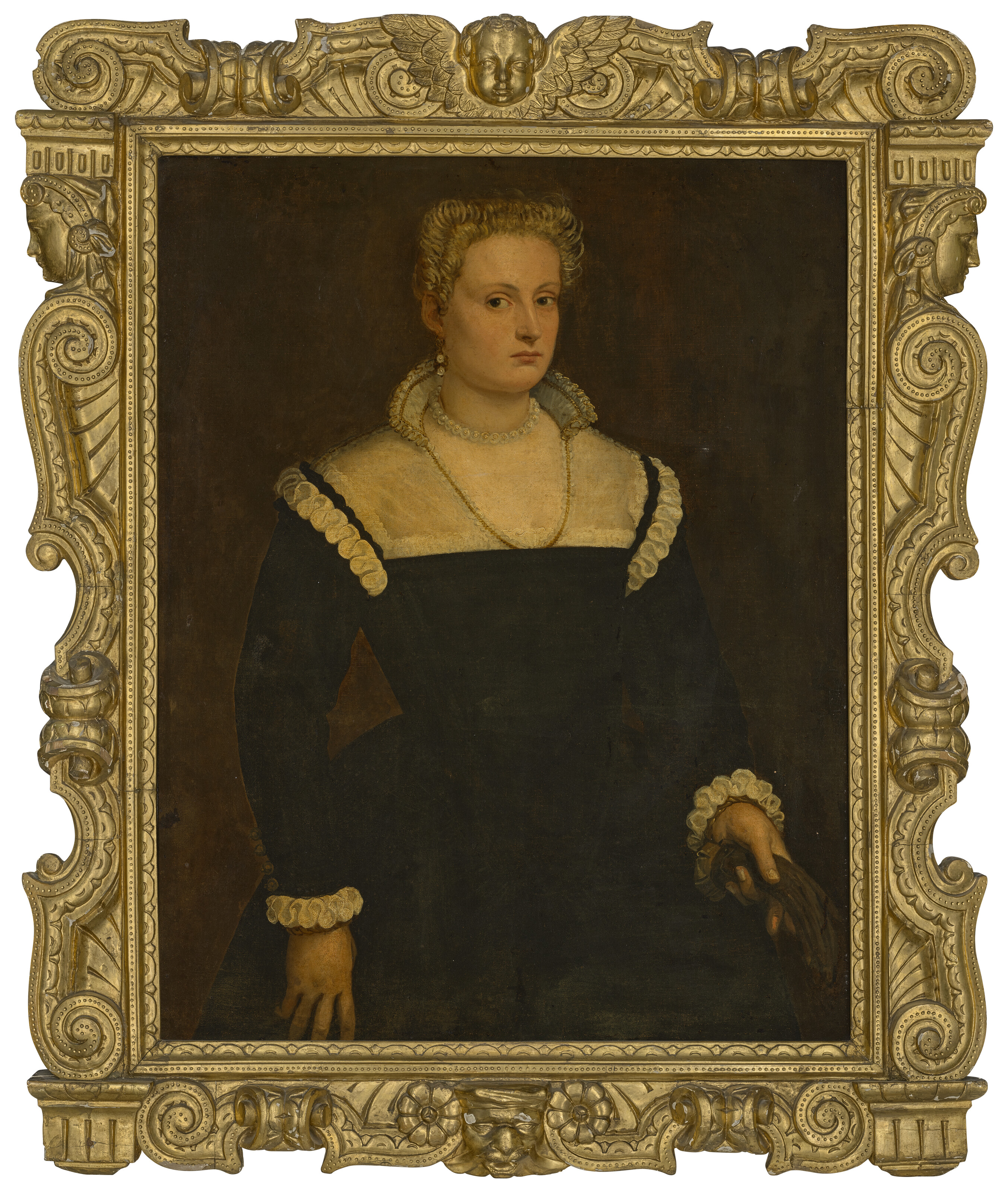 | Portrait of a lady traditionally identified as a member of the Morosini family of St Formos three-quarter-length in a black gown and gold-trimmed white partlet holding a pair of gloves | |