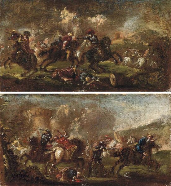 | A) Scontro di cavallerie; B) Truppe di fronte a fortezza | |
