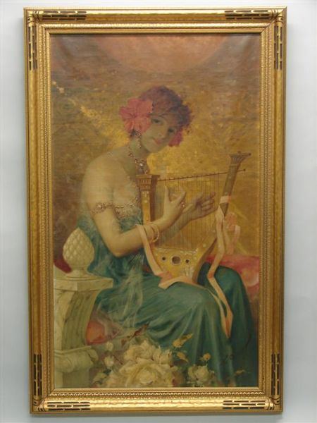 | Young red headed girl playing the lyre in early 20th c. dress. SLR, F. Oliva | |