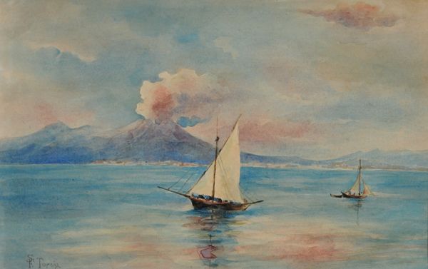 | Veduta del Vesuvio dal mare con imbarcazioni | |