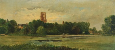 | Landscape with ruin at a lake | |