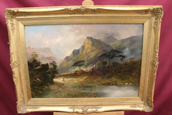 mountainous landscape with a figure by a lake