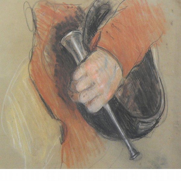 Study of a Hand Holding a Hunting Horn and Riding Hat