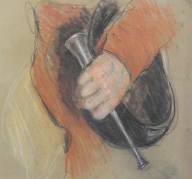 Study of a Hand Holding a Hunting Horn and Riding Hat