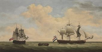 | A Royal Navy 14-gun brig accepting the surrender of a Dutch East Indiaman | |