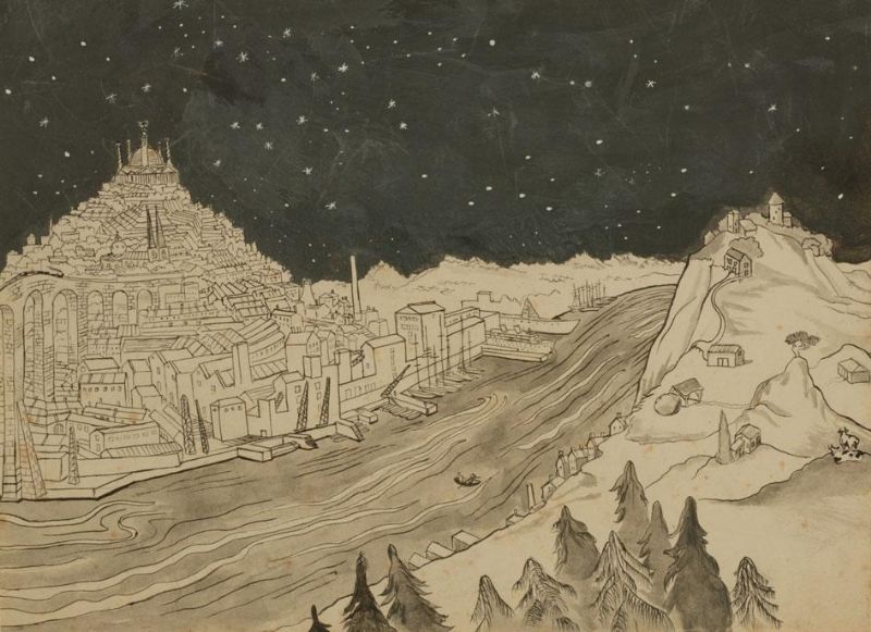 A view of a Middle Eastern city beneath a starry sky