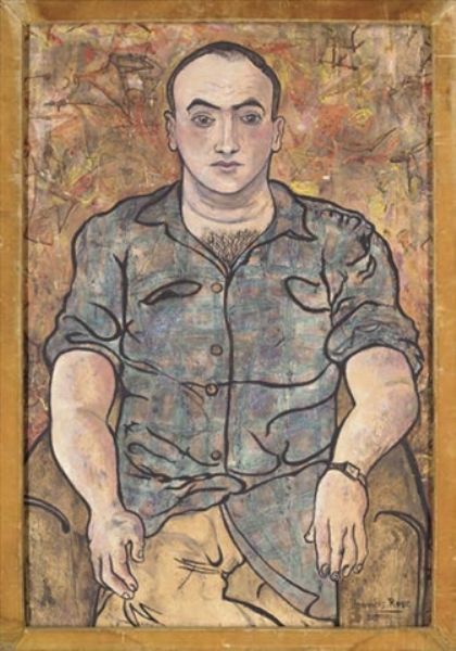 | Portrait of a man, seated half-length, in a blue shirt | |
