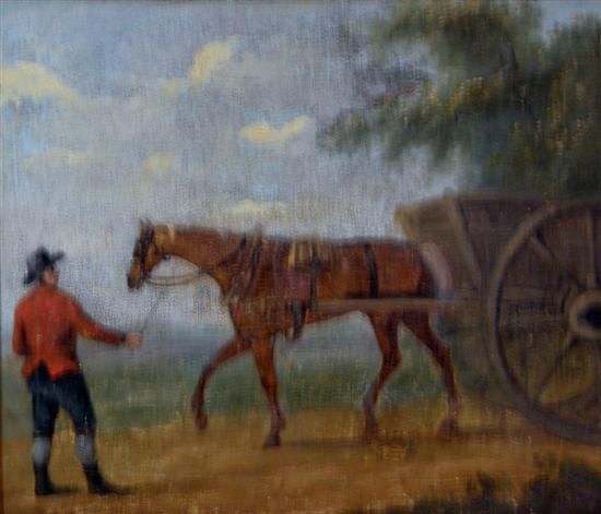 Horse and Wagon with figure, rustic scene