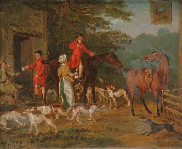 Huntsmen outside a tavern