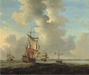 | Men-o'-war, one of them lying at anchor, off Sheerness near the Nore lightship | |