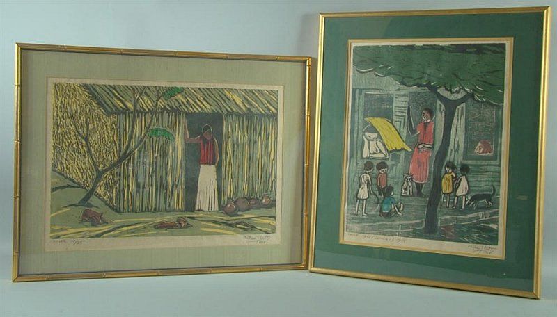 TWO COLOUR WOODCUTS; "MUJER" AND "CALLE"