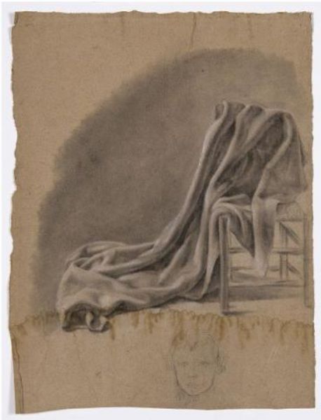 | Etude de drapé sur une chaise et croquis de tête d'enfant | |