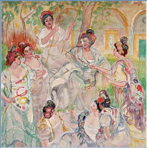 Espagnoles dans un jardin, l'escarpolette