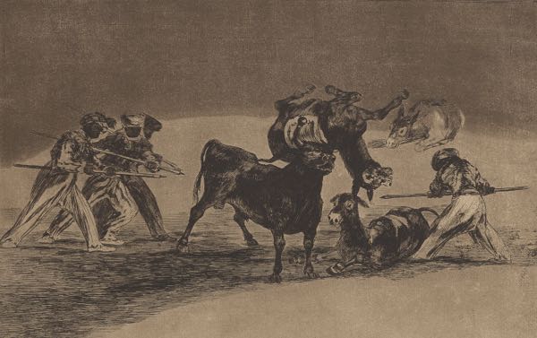 titled "Palenque de los Moros Hecho con Burros Para Defenderse del Toro Embolado". Third state, printed by E. Loizelet, Paris, 1876. Etching with burnished aquatint and drypoint on watermarked Arches laid paper, with full margins, three deckled edges | |