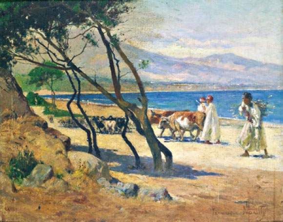 BERGERS ET TROUPEAUX SUR UN BORD DE MER