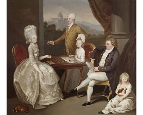 | Portrait of The Hon. Aubrey Beauclerk and his Family, in an elegant interior, a view to the Castel Gandolfo beyond | |