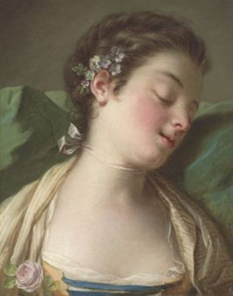 A sleeping lady, bust-length