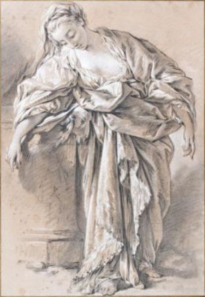 | Etude de femme drapée appuyée sur un piédestal | |