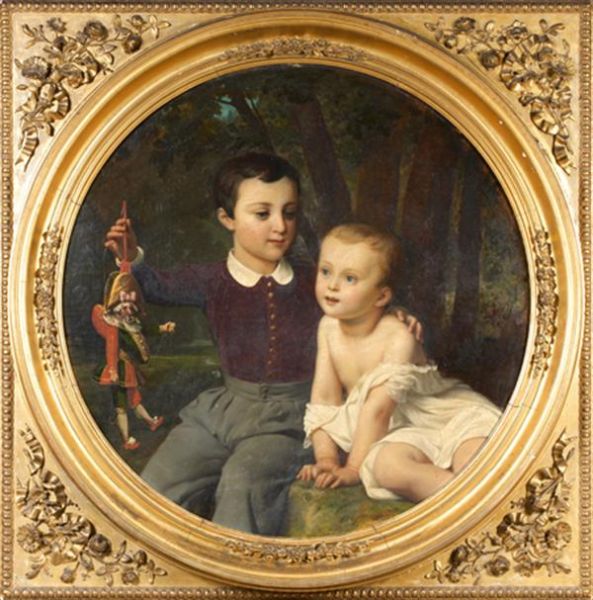 Portrait de Paul et Léon Henry-Lepaute jouant avec une marionnette