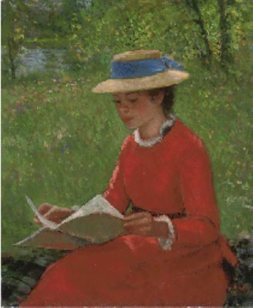 | Elizabeth-Anne au chapeau de paille, lisant, assise au bord de l'eau | |