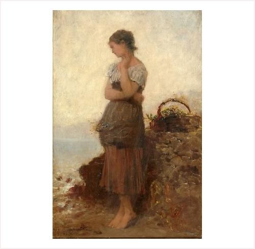 JEUNE FILLE SONGEUSE SUR LA FALAISE