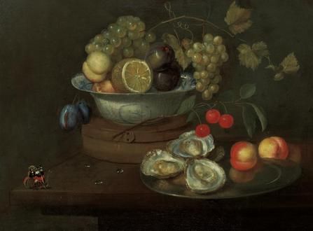 Still Life of Fruit and Oysters with a Butterfly on a Table