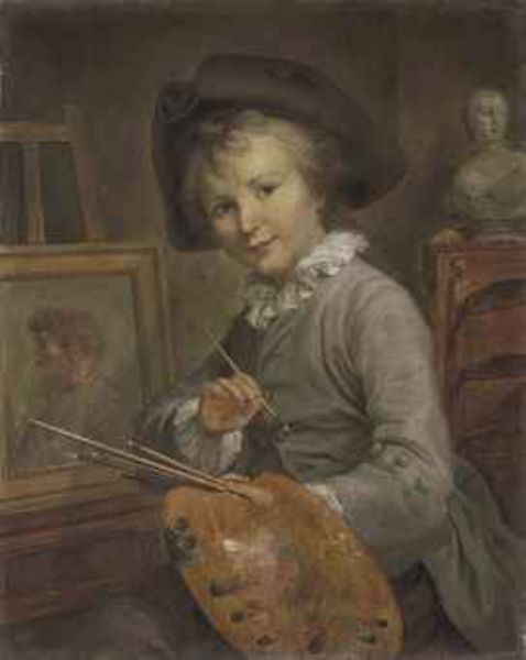 | Portrait of a young boy, three-quarter-length, seated at an easel, a classical bust behind | |