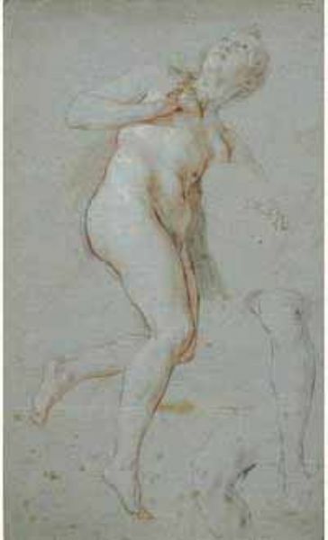 Etude de nu féminin, reprises des jambes et d'une main