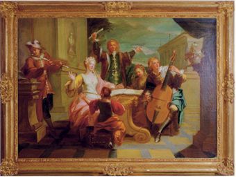 | A musical company with a boy and dog; and A musical company with a man playing a viola di gamba | |