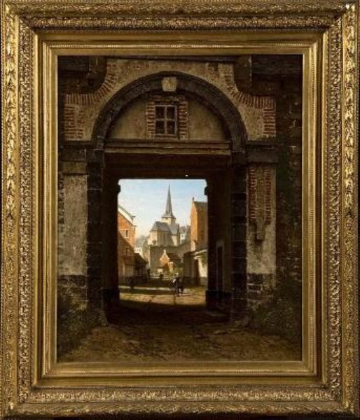 Entrée de Bruges animée donnant sue l’église Saint-Gilles