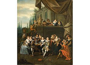 HÖFISCHE TISCHGESELLSCHAFT AUF EINER SCHLOSSTERRASSE