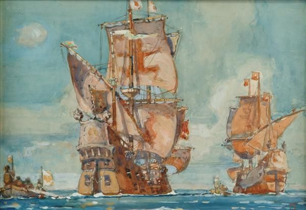 Galleons and boats at sea