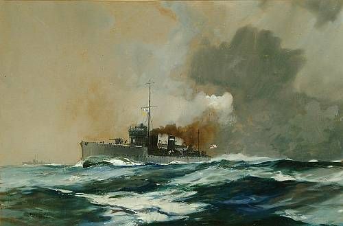 Steam battleships at sea