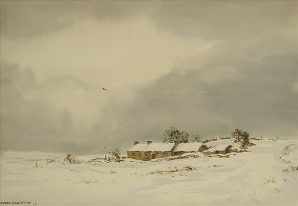 | 'County Donegal, Ireland', snow covered landscape with cottages | |