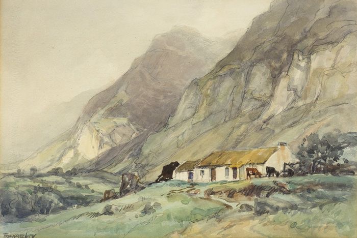 COTTAGE AND CATTLE AT MOUNTAIN EDGE