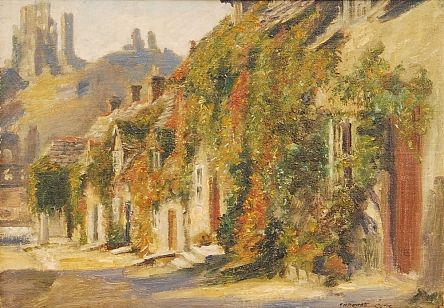 Corfe castle and village in Dorset, signed and titled